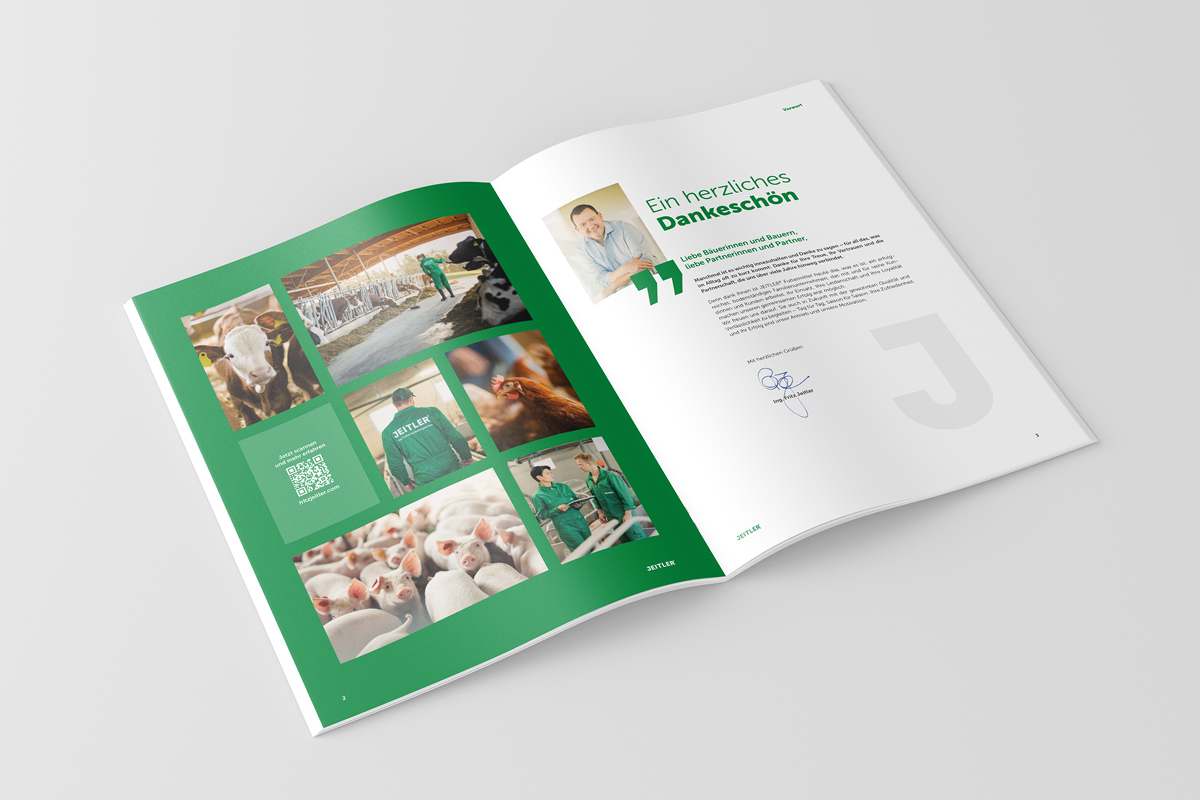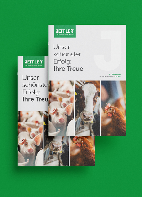 Die Futtermittelexperten von Jeitler haben ein Erscheinungsbild bekommen, das ihrer Kompetenz gerecht wird. Im Zuge des Rebrandings wurde die Marke geschärft, neu gedacht und visuell klar positioniert. Aufbauend darauf entstand ein flexibles Broschüren- und Folder-System, das Inhalte strukturiert, Orientierung schafft und die Vielfalt des Angebots klar kommuniziert. Ein Auftritt, der nicht nur gut aussieht, sondern funktioniert.